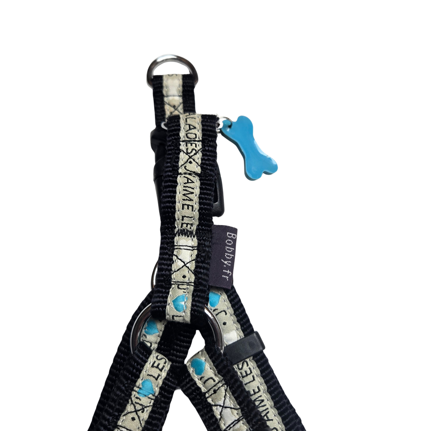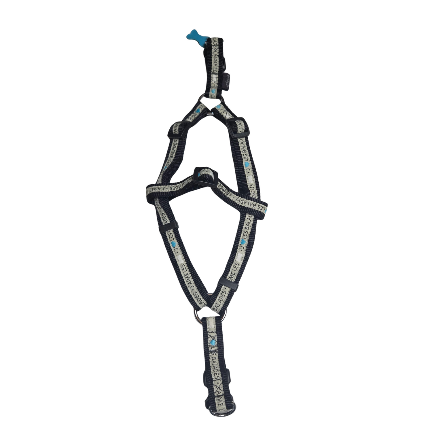 This brightly colored harness is super easy to put on! Your dog will be easily spotted. Made of braided nylon, it's very durable and fastens easily with a clip buckle. And for a chic touch, it has a flexible bone-shaped pendant.