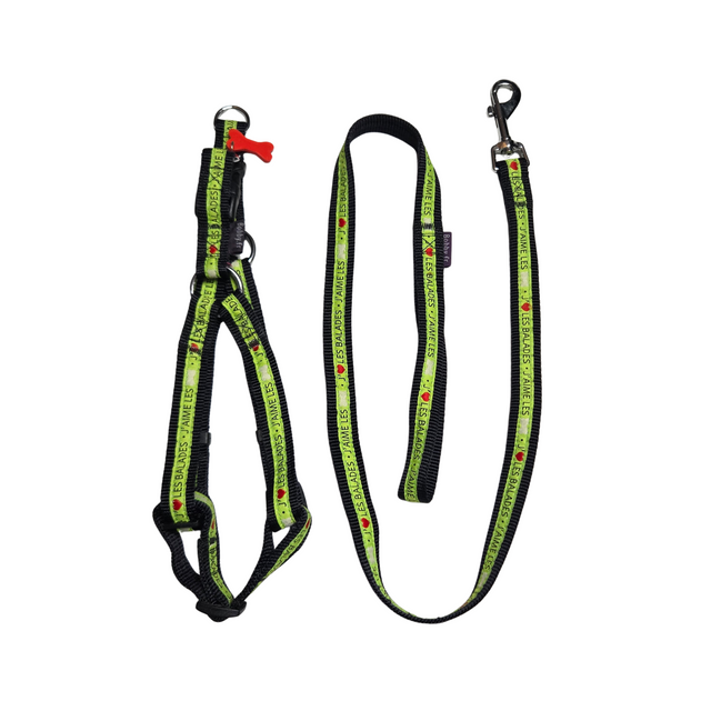 This brightly colored leash and harness set is super easy to put on! With this brightly colored harness, your dog will be easily spotted. Made of braided nylon, it's very durable and fastens easily with a clip buckle. And for a chic touch, it has a flexible bone-shaped pendant.