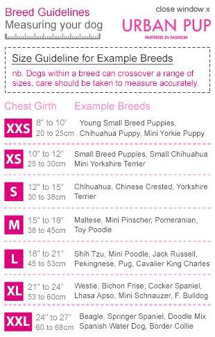 Om er zeker van te zijn dat u de juiste maat voor uw huisdier bestelt, is het belangrijk om het dier goed op te meten. Aan de hand van de onderstaande maattabel kunt u de juiste maat kiezen voor uw hond. Mocht de maat niet goed zijn, mag het tuigje uiteraard omgeruild worden voor een maat groter of kleiner.